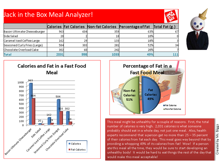 Objective: Use the Internet and spreadsheets to analyze the nutritional value of a typical fast food meal.