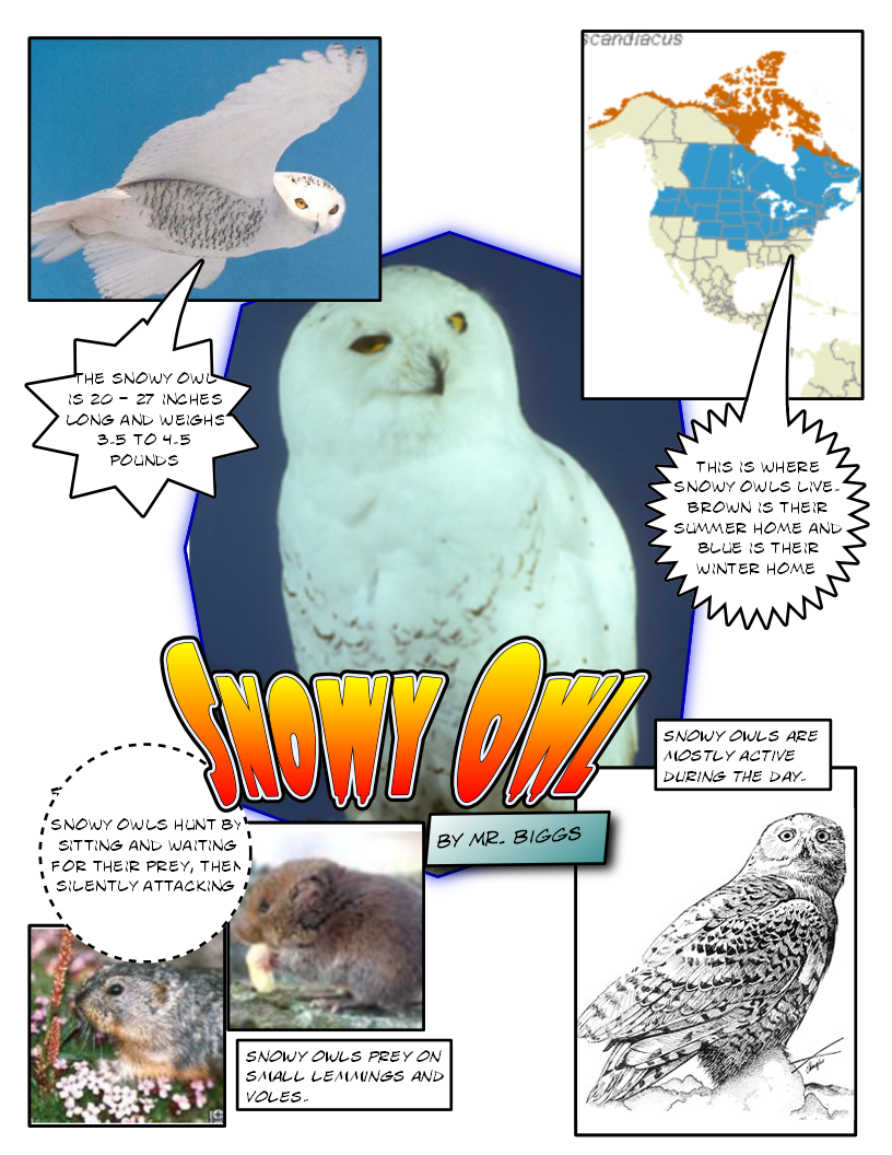 • One panel (or divide the area into 2 panels like I did) should show a picture or pictures of the prey your owl feeds on.